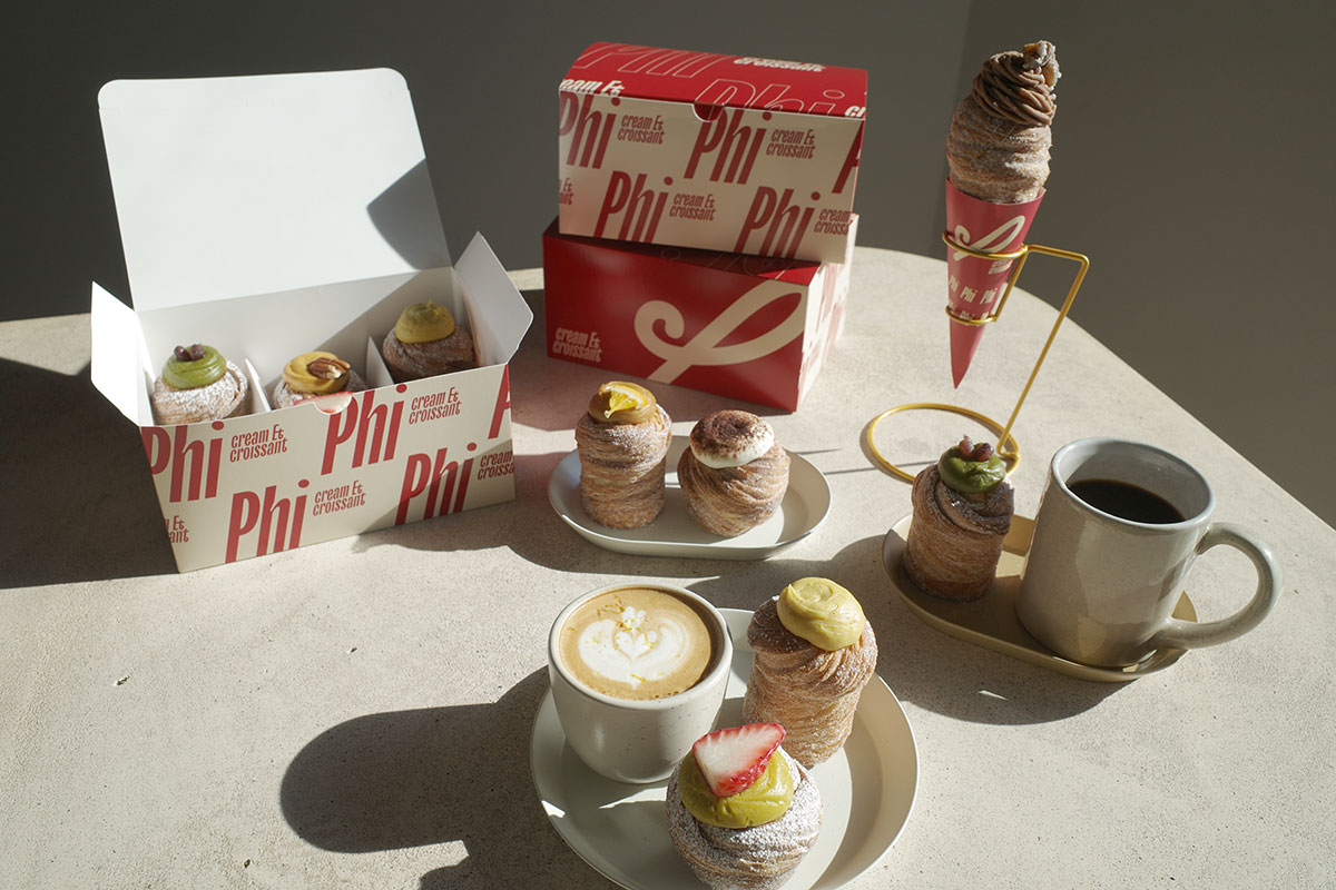 ブランド名の「Phi(ファイ/φ・Φ)」とは、“最も調和的で美しい比率”とされる黄金比を象徴するギリシア文字。そんな“調和と美”をコンセプトに、クリームとクロワッサンが生み出す美しいビジュアルと、どこか新鮮で懐かしい味わいを通じて、「普遍的でありながら新しい喜び」を届けたいという想いが込められている。