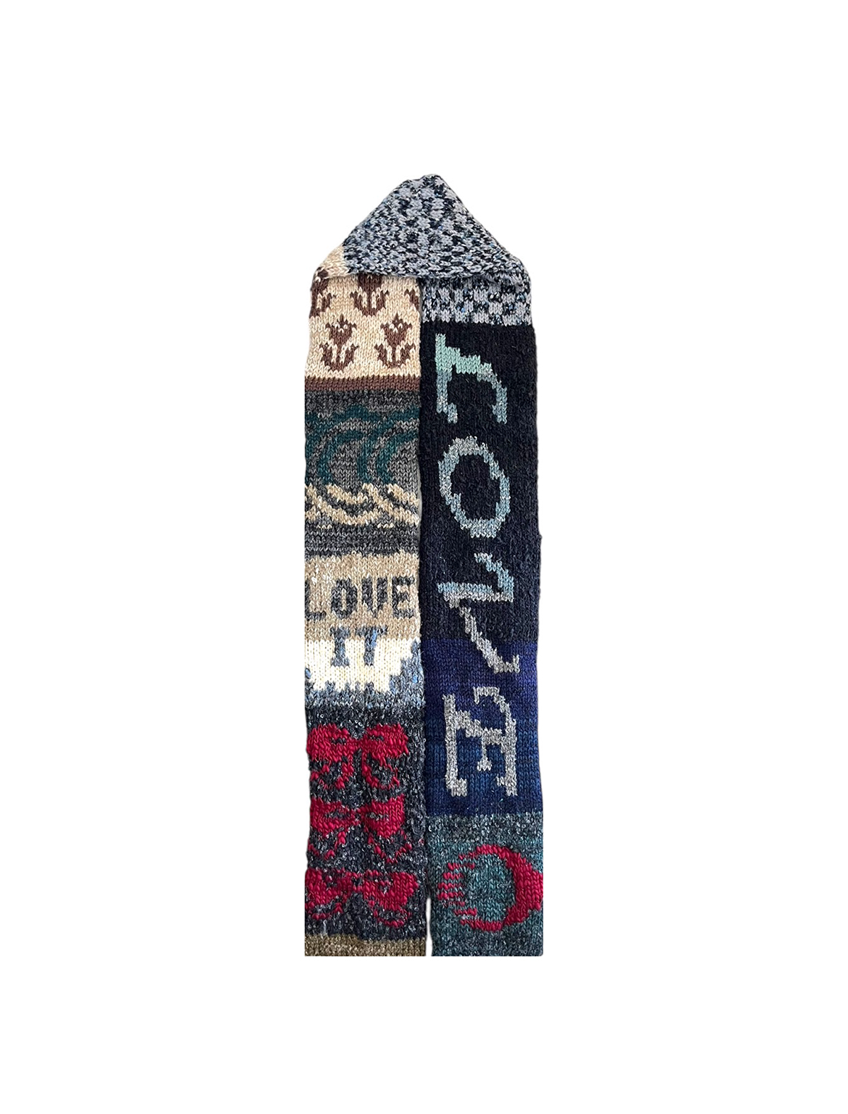 会場には、ブランドのシグネチャーアイテムであるScarf、Narrow Scarfをはじめ、ビーニーやバッグ、クッションなどの雑貨類まで、冬のスタイリングに加えたくなる、ポップなニットアイテムが豊富にラインナップ。いずれも一点一点パターンが異なるアソート仕様で、出会いの楽しさがあるセレクションになっている。