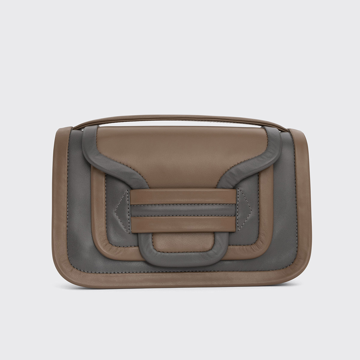 2006年の誕生以来、ブランドのアイコンとして愛され続けてきた「アルファ バッグ」は、大きなフラップや幅広の前立て、留めループといった特徴的なディテールが魅力。ロゴや金具を表に出さないミニマルなデザインと、マルチな持ち方ができる仕様で、シーンを選ばず万能に活躍する。