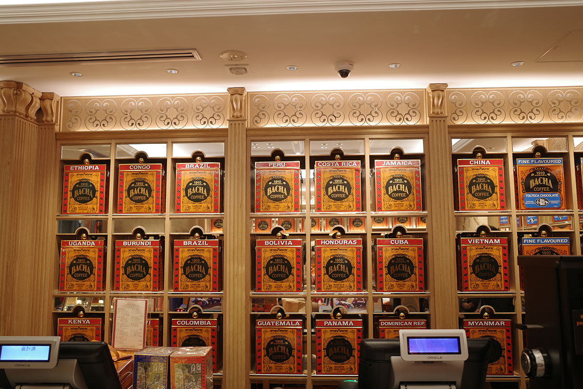 1階のコーヒーブティックでは、バシャのコーヒーマスターが常駐し、シングルオリジンからフレーバー付きのコーヒー、デカフェまで、さまざまな好みやニーズに合わせたスペシャルティコーヒーを提案。ホールビーンズや挽き豆、ギフトボックス入りのドリップバッグや、食器類まで取り扱う。