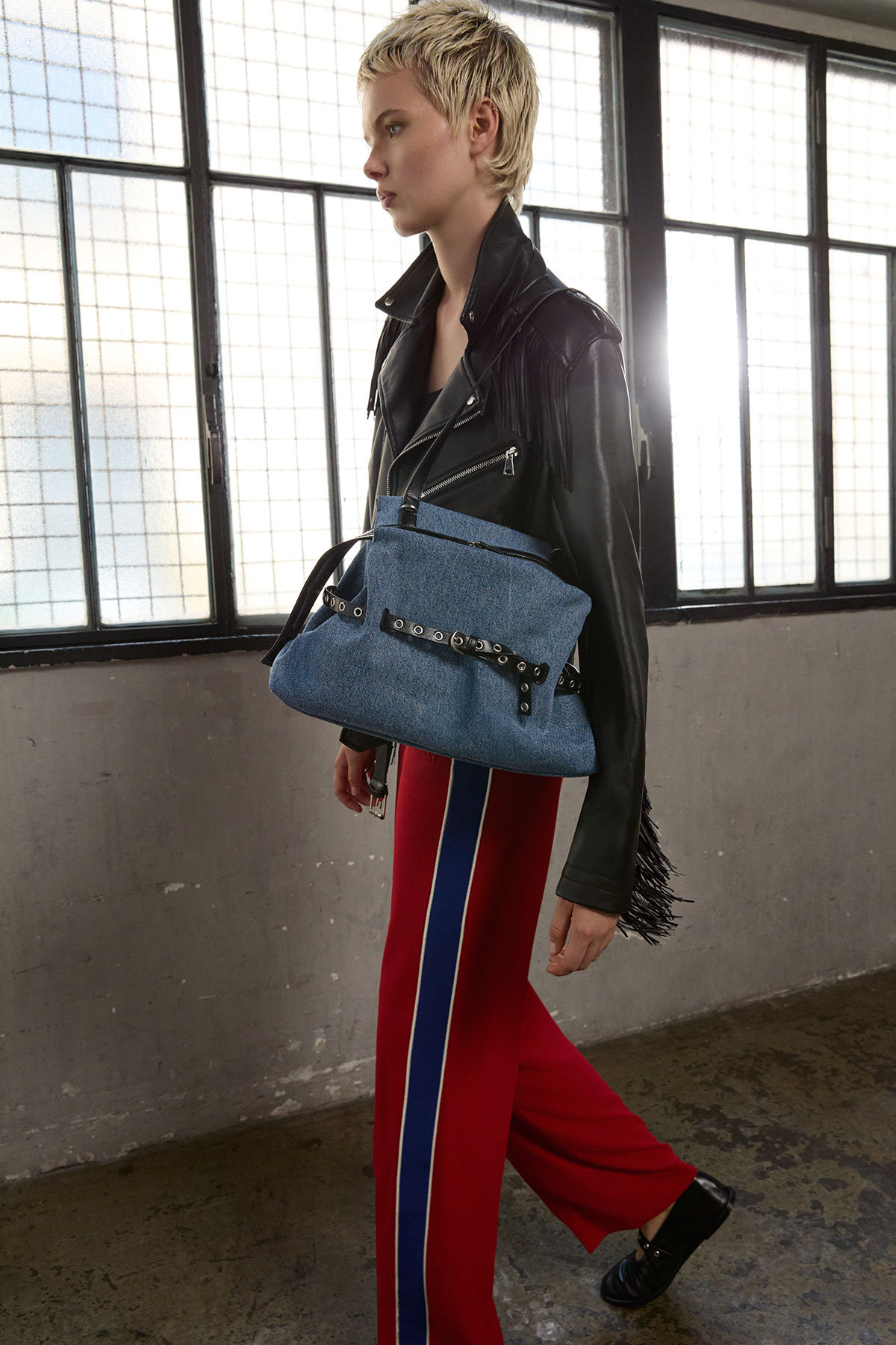 ブランドの代表的なバッグを紹介。台形フォルムの「Strin」は、ボディに巻かれたベルトのディテールがエッジィなアクセントに。ワンハンドルのデザインも特徴的で、長めのストラップが肩から掛けやすく、付属の取り外し可能なショルダーストラップを付ければショルダーバッグとしても持ち歩くことができる。また、ジップが大きく開くため物を出し入れしやすく、実用性に富んでいる。