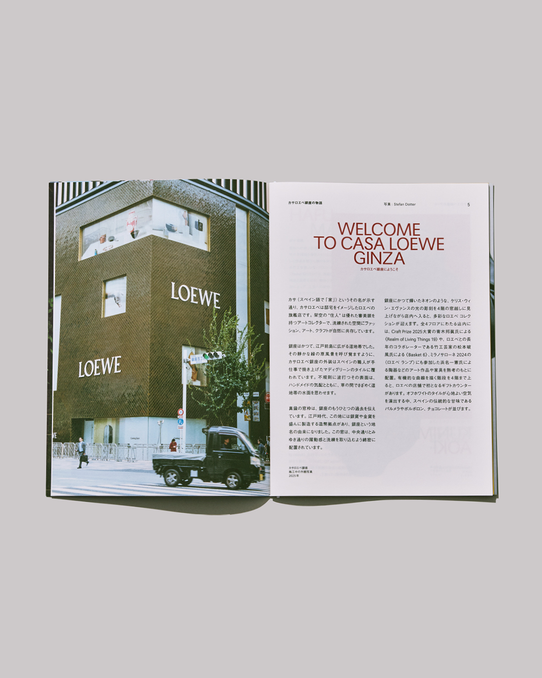 あわせて配布される銀座シティガイドでは、カサロエベ銀座の建築的・美的背景をはじめ、キャンペーン映像の制作秘話やキャストインタビュー、さらにロエベの精神性と共鳴する銀座の店舗や事業者を紹介。ガイドはカサロエベ銀座のほか、森岡書店、中村活字でも配布され、中央通りと晴海通りでは1月21日まで特別フラッグが掲出される。