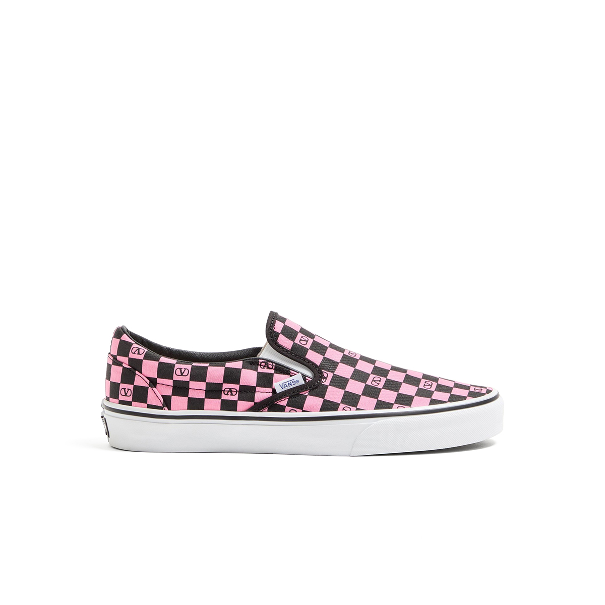 本コレクションは、Valentino.comおよび世界各国の一部ヴァレンティノ ストア、さらにヴァンズ公式オンラインストアにて発売中。直営店での展開カラーは、ウィメンズが「チェリフィック」と「ヴァレンティノ ル シャ デ ラ メゾン」の2型、メンズでは同2型に加え、「ドット/Vロゴ チェッカーボード」「トロピカルリーフ」の全4型を展開する。