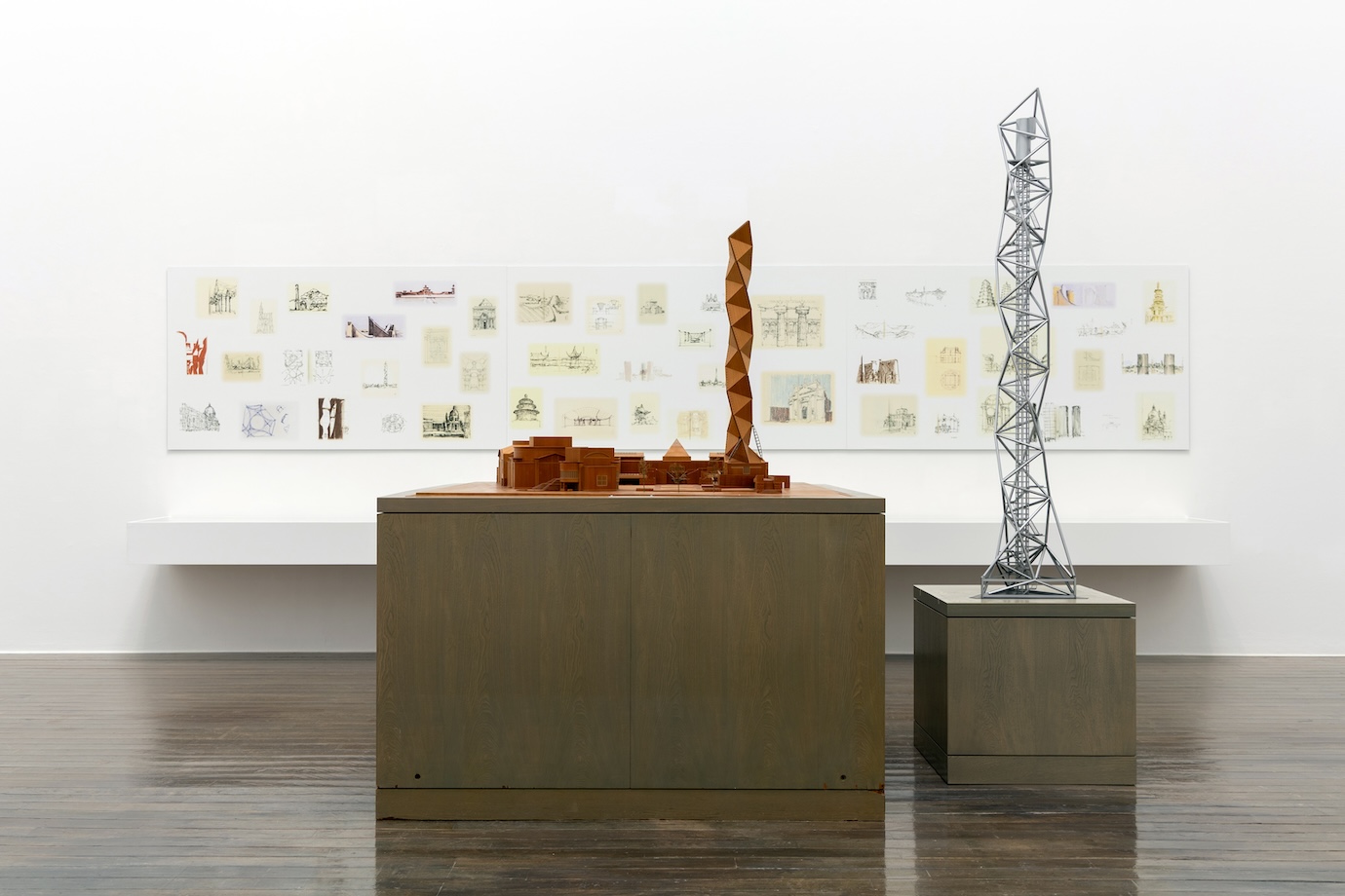 展示は磯崎の持つさまざまな顔の中からいくつかの側面をピックアップ、半世紀以上にわたる膨大な仕事を整理してくれる。会場には彼が東京大学丹下健三研究室で関わった東京湾を横断する人工都市〈東京計画1960〉や、〈つくばセンタービル〉などの建築作品の模型が並ぶ。また彼は複数の建築家を起用して街を造る「くまもとアートポリス」、アーティストとコラボレーションした〈奈義町現代美術館〉〈ルツェルン・フェスティバル・アーク・ノヴァ〉などキュレーターとしても優れた能力を発揮している。