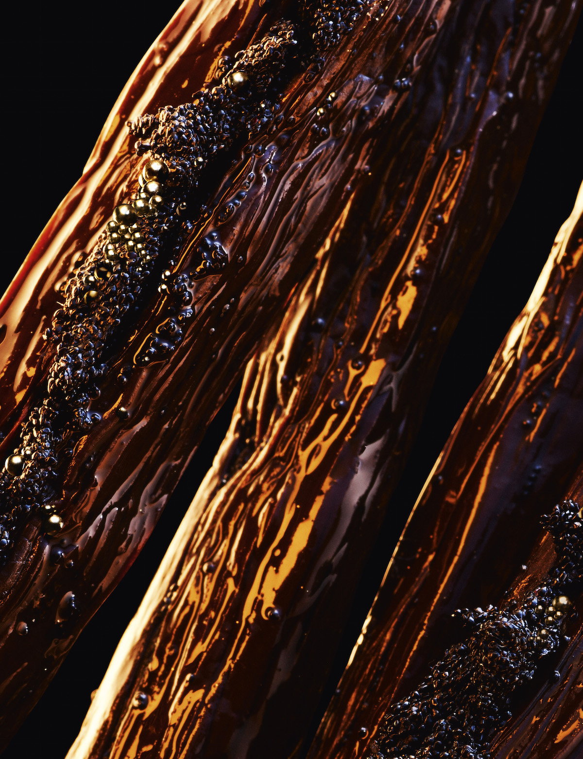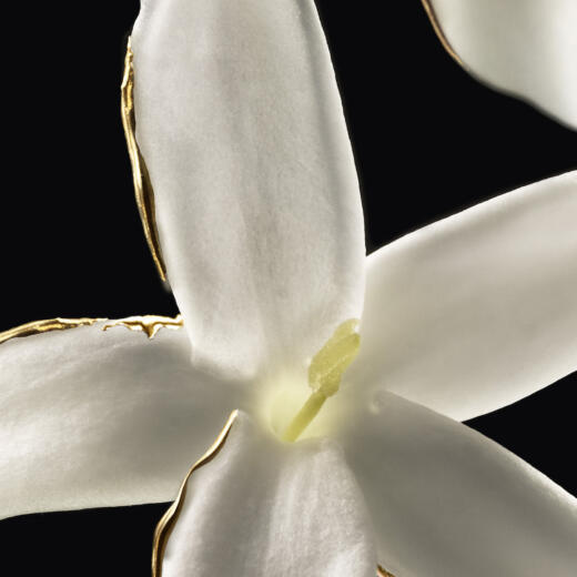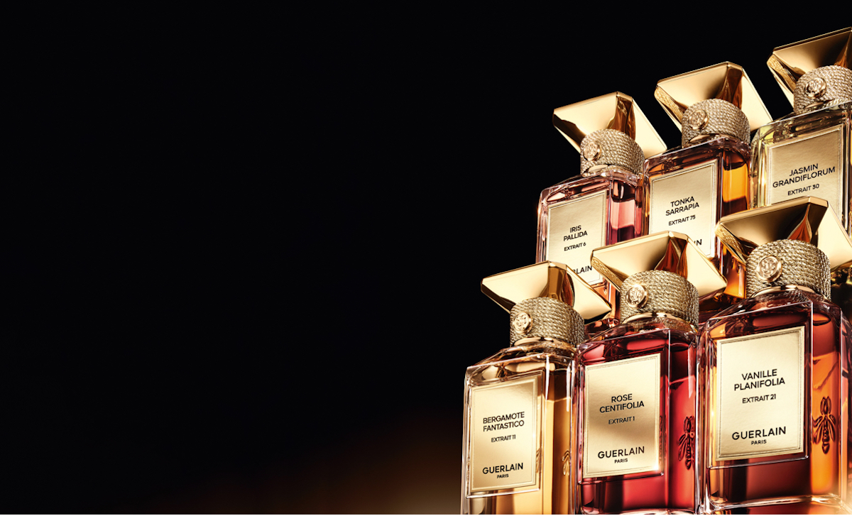 名香「ジッキー」、「ラ プティット ローブ ノワール」、代表作の「シャリマー」に至るまで、メゾンの香りを彩るのは、ローズ、ベルガモット、ジャスミン、ヴァニラ、アイリス、トンカビーンの6つの素材からなる「ゲルリナーデ」。その「ゲルリナーデ」を再解釈して2023年に創出された「ラール エ ラ マティエール エクストレ」コレクションは、1世紀以上にわたってメゾンを支え、数多くのインスピレーションを沸き立ててきた、まさに宝石のような6つの素材に捧げる調香師のオマージュを表現している。