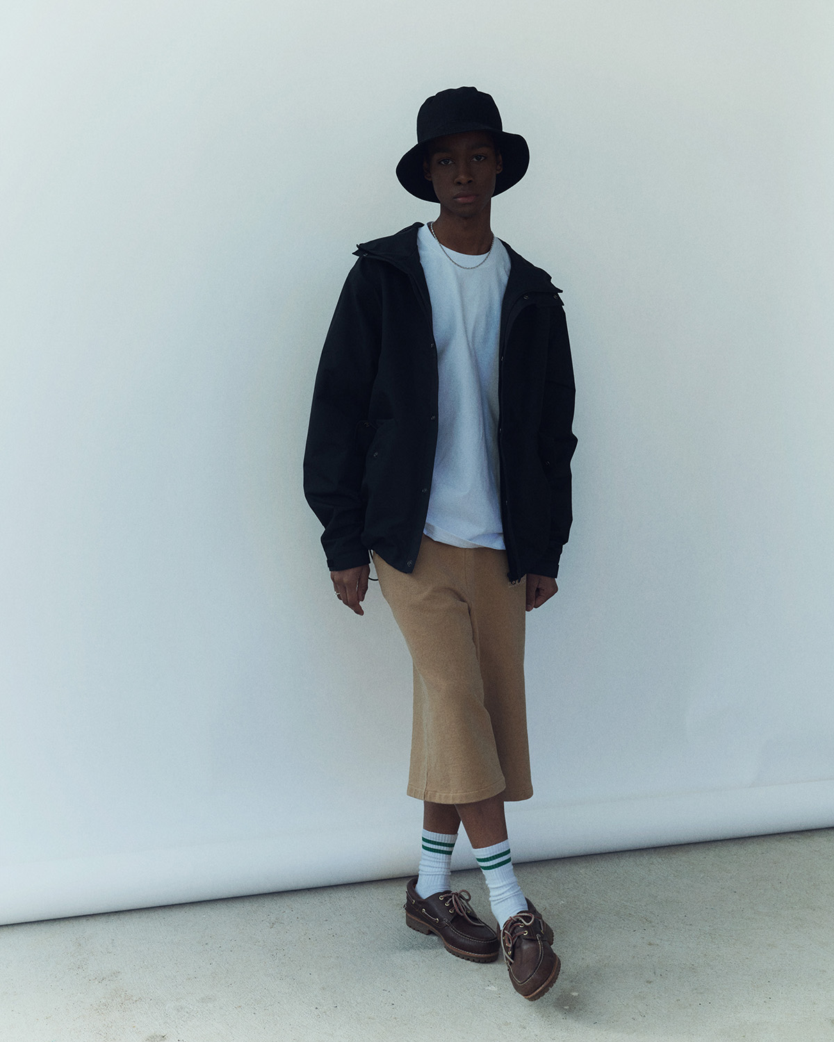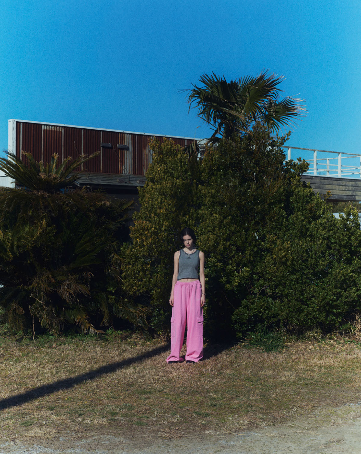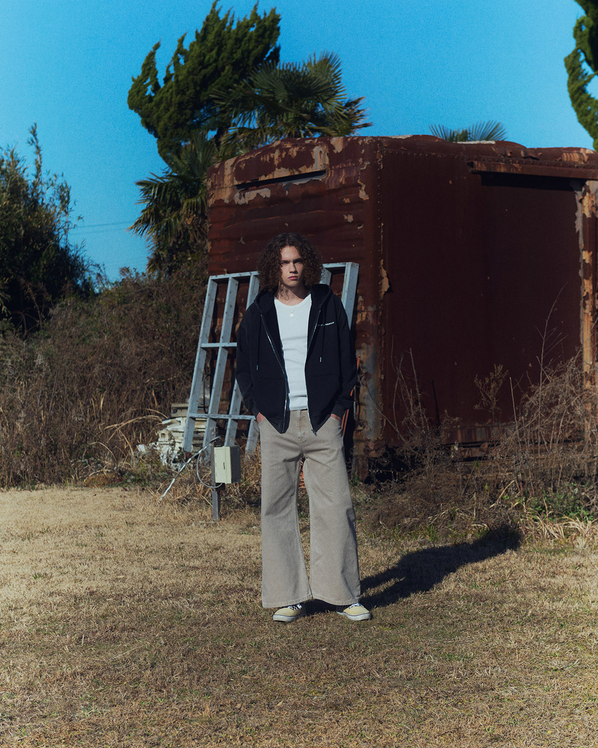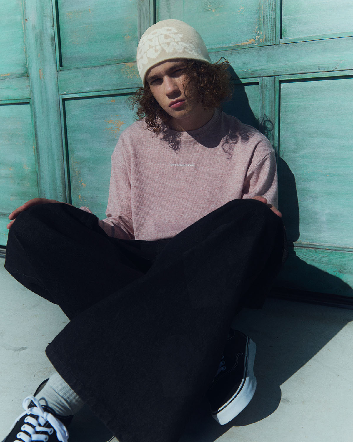 2024年に始動した本ブランド。今季は初夏の風を纏うエフォートレスなムードを軸に、自由で肩の力の抜けたストリートスタイルを提案する。サーモンピンクやベージュ、ライトブルーをベースに、オックスレッドやブラックを差し色として効かせたカラーパレットが、軽やかさの中にエッジを感じさせる。