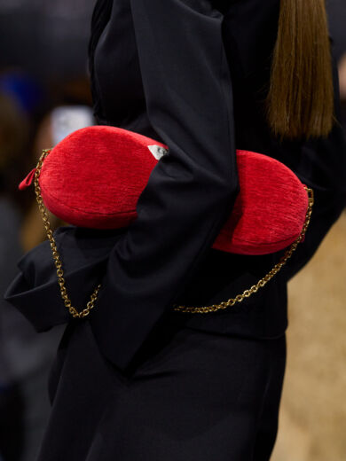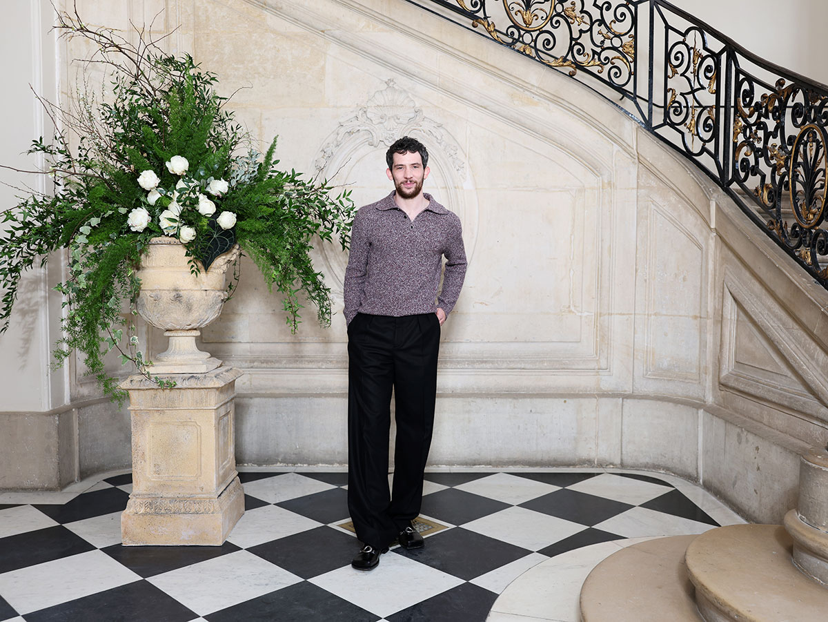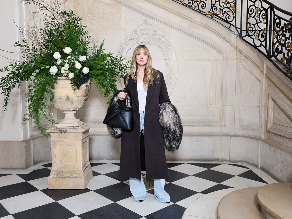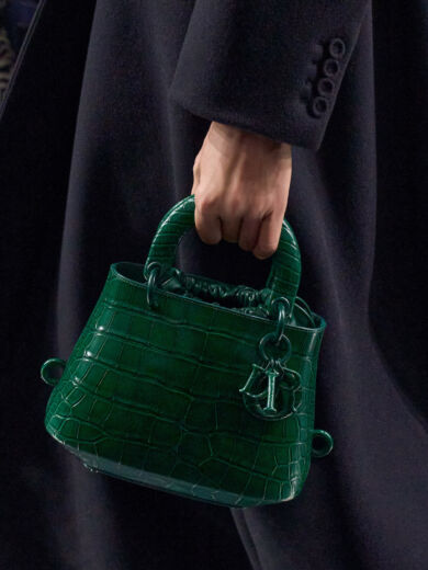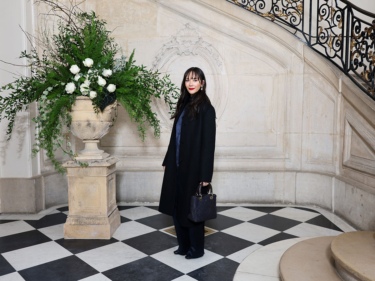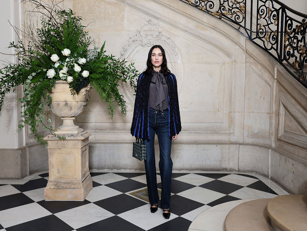 また、アンダーソンによって、これまでカーゴパンツやデニムに刷新された1948年春夏のドレス「カプリス」のシルエットは、今回もニットワンピースのフロントやツイードコートのバックスタイルに転用。「ドレスアップとカジュアルダウンという相反するものの駆け引き」は、アンダーソンの真骨頂であり、ネップのニュアンスや切りっぱなしの処理など、どこか粗野なムードを醸すコートに上質なエレガンスを付与していた。かたや、メゾンが誇るシグネチャーのひとつで、前任のマリア・グラツィア・キウリが好んで多用していたリボンやボウ(蝶々結び)のモチーフは、今回花を模したイヤーカフが目立った程度。ただ、裏を返せば潤沢なアーカイブも含めて、先人たちのレガシーが余りあることの証左とも言えるだろう。