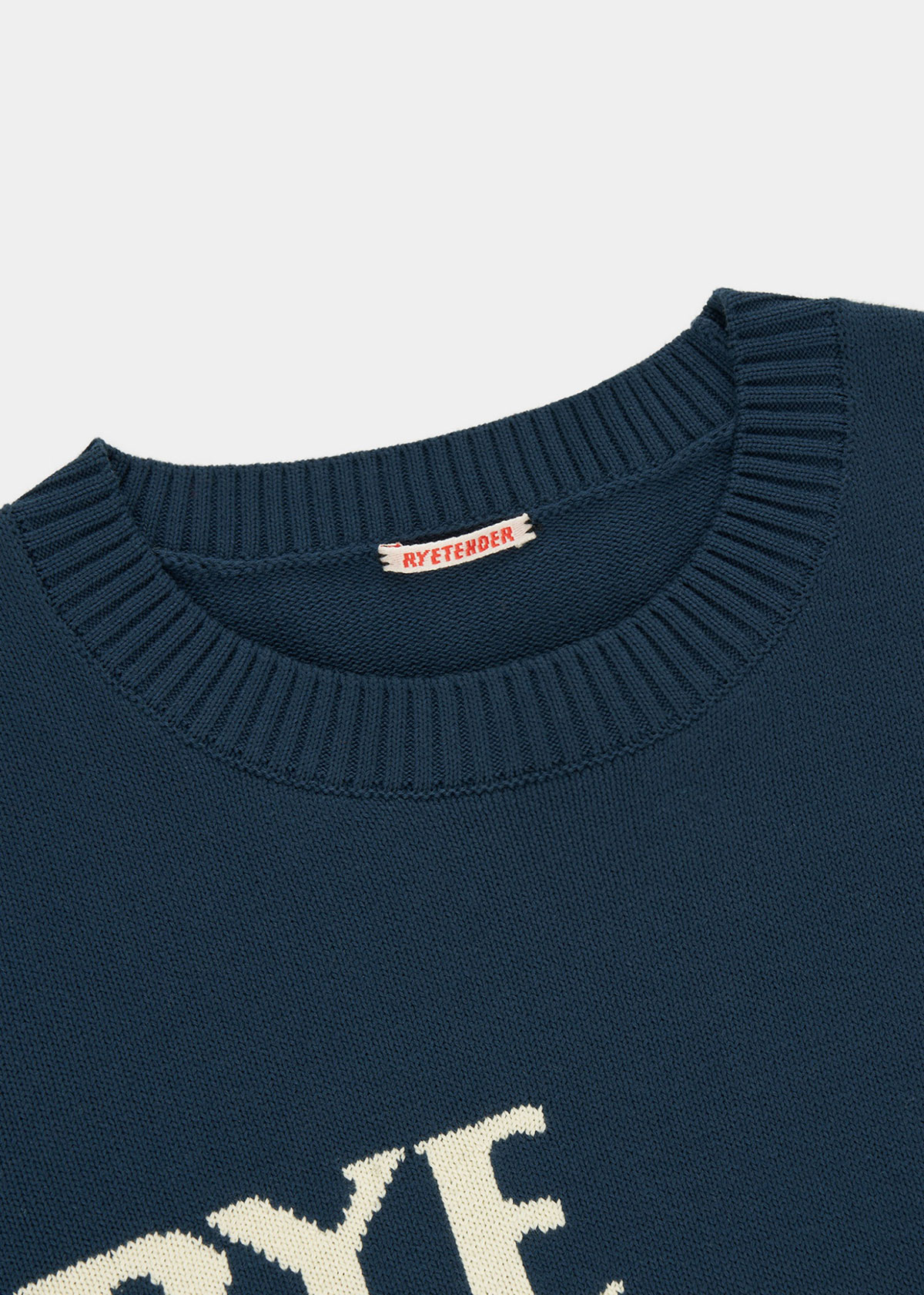 カラーは、ネイビーとグリーンの2⾊展開で、ユニセックスで着用できる2サイズを用意。グリーンのバックスタイルには、我喜屋の作品に度々登場するカーテンのモチーフがあしらわれている。また、ライテンダーのニットとして初めてブランドロゴがあしらわれたのもポイント。