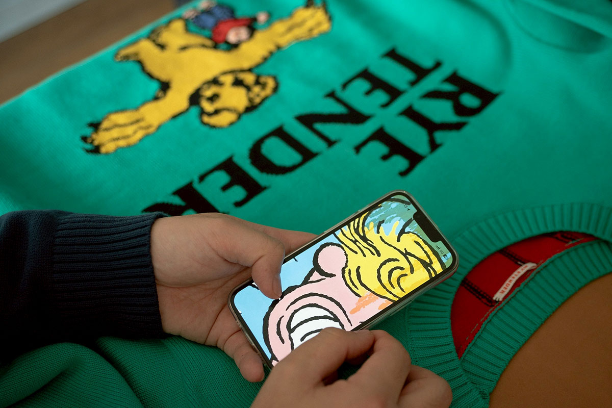 「ライテンダー」が我喜屋位瑳務とコラボレーション。原画をニットで表現したアートな一枚 | Numero TOKYO