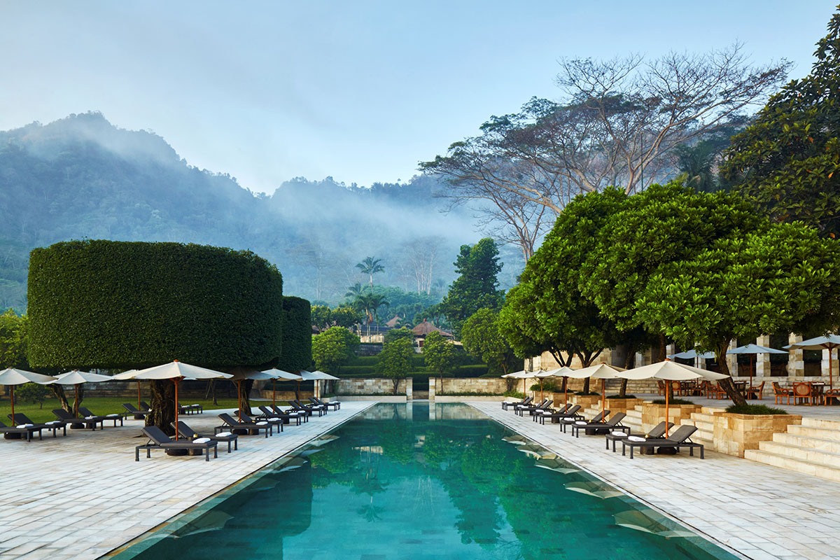 アマンジウォは、インドネシア・ジャワ島中部、世界遺産ボロブドゥールを望む高台に佇む全33室のリゾート。「平和なる魂」を意味するその名の通り、棚田や火山群に囲まれた雄大な自然の中で、静けさに包まれる滞在が叶う。