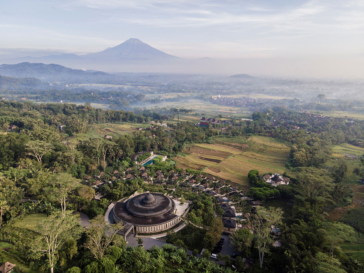 壮麗なプールからはケドゥ平原と連なる山々を一望でき、ボロブドゥールの朝日や夕景を巡る特別なエクスカーションをはじめ、寺院巡りや村での文化体験など、ジャワの歴史と伝統に深く触れられるのも魅力だ。