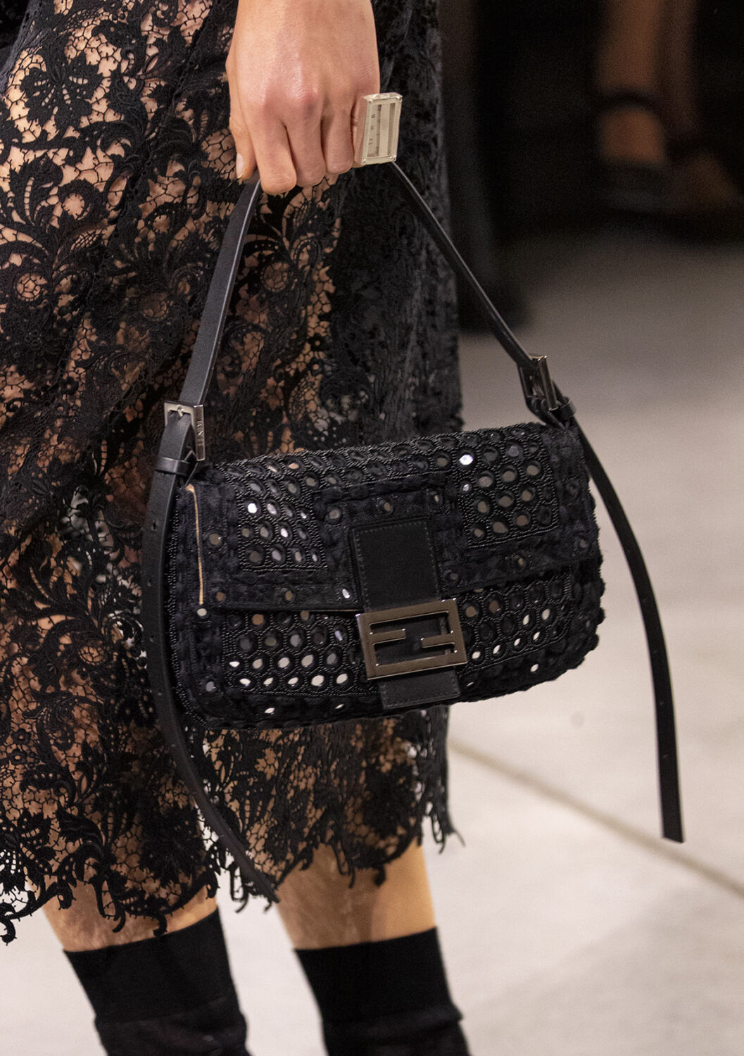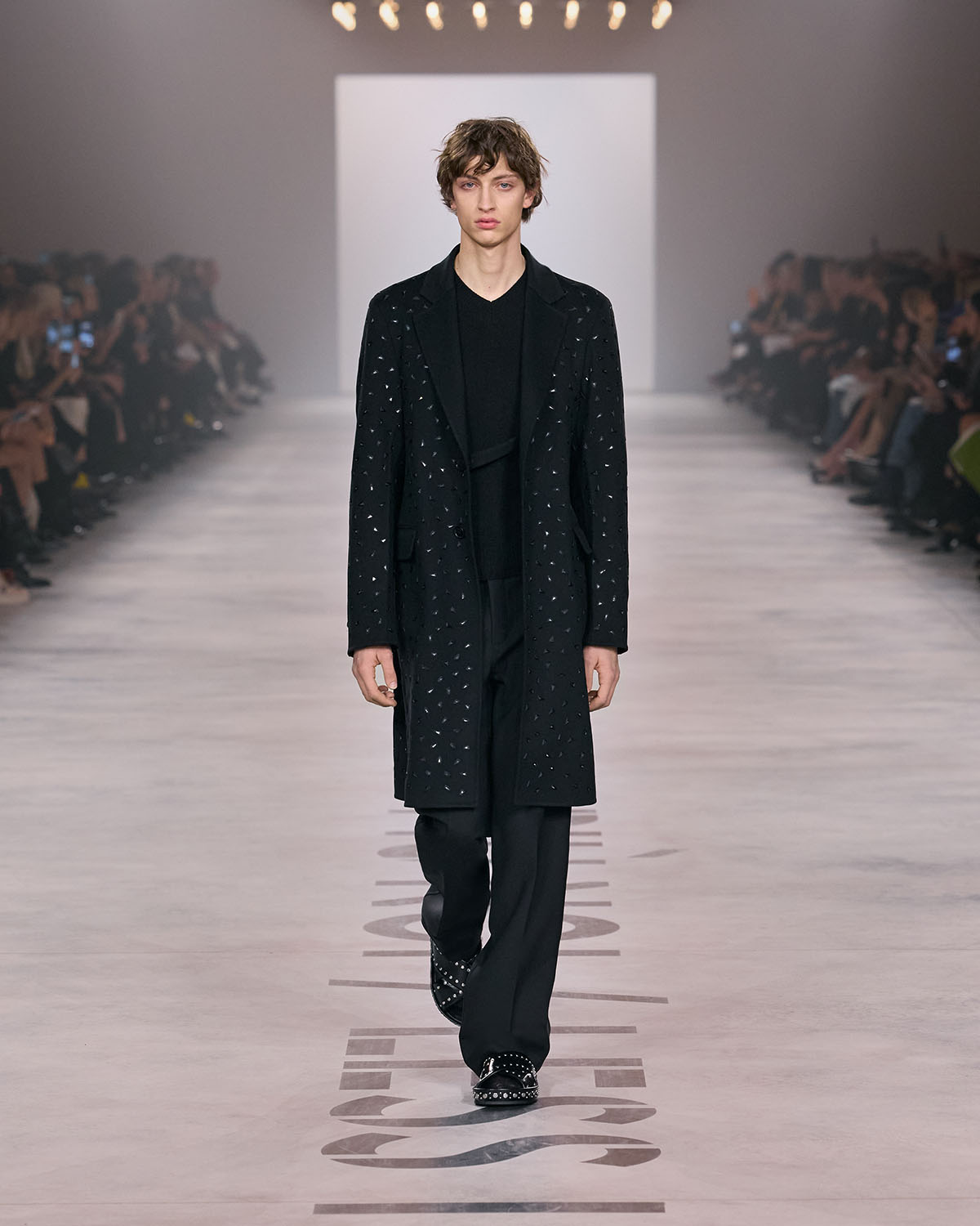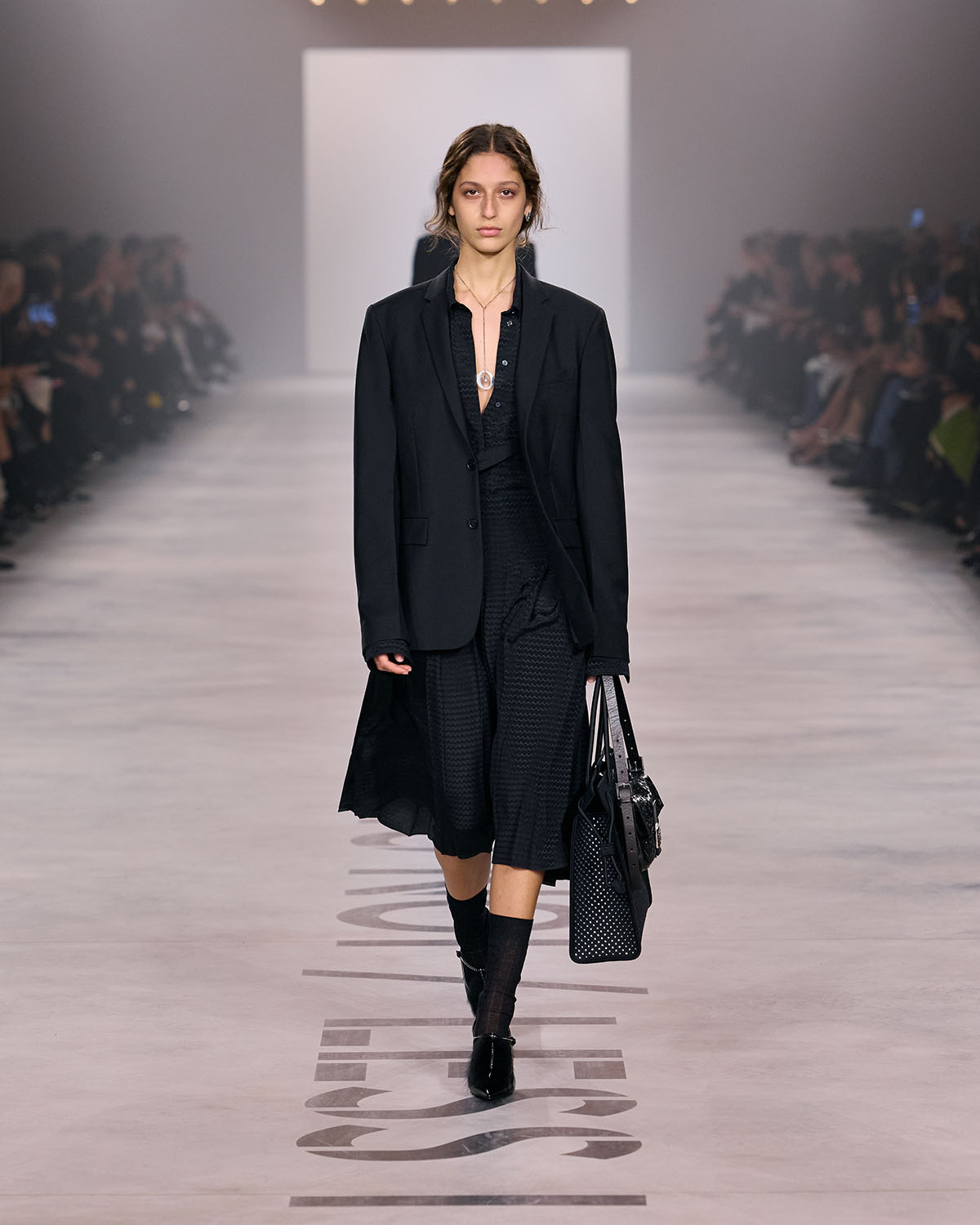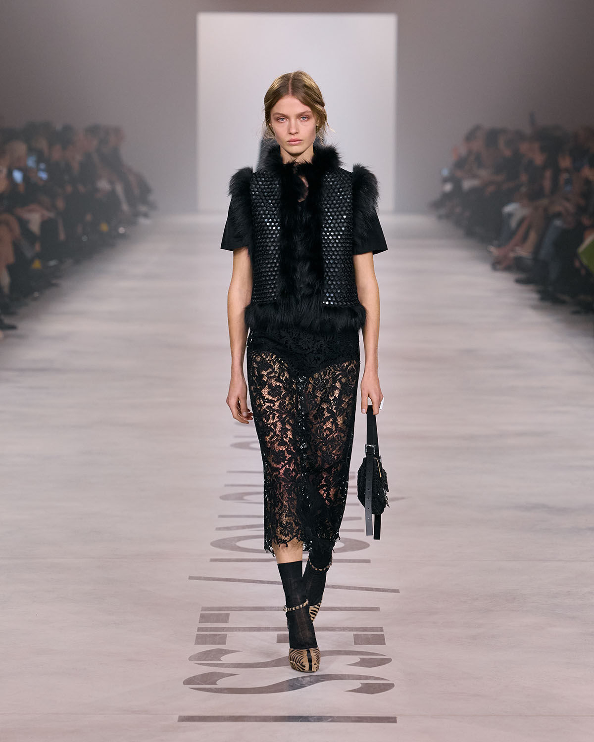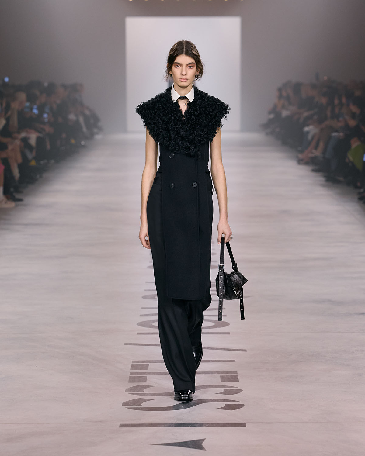 キウリが提示したのは、個の強さではなく、関係性の中で立ち上がる創造性。フェンディ家の5人姉妹が築いた歴史へのオマージュとともに、共に働き、共に作ることの価値を再定義する。多様性は個性を打ち消すものではなく、むしろビジョンを現実にするためのプロセス。その視点がコレクション全体を貫く。ランウェイではブラックを基調としたルックが印象的に並び、視覚的な統一感を演出。