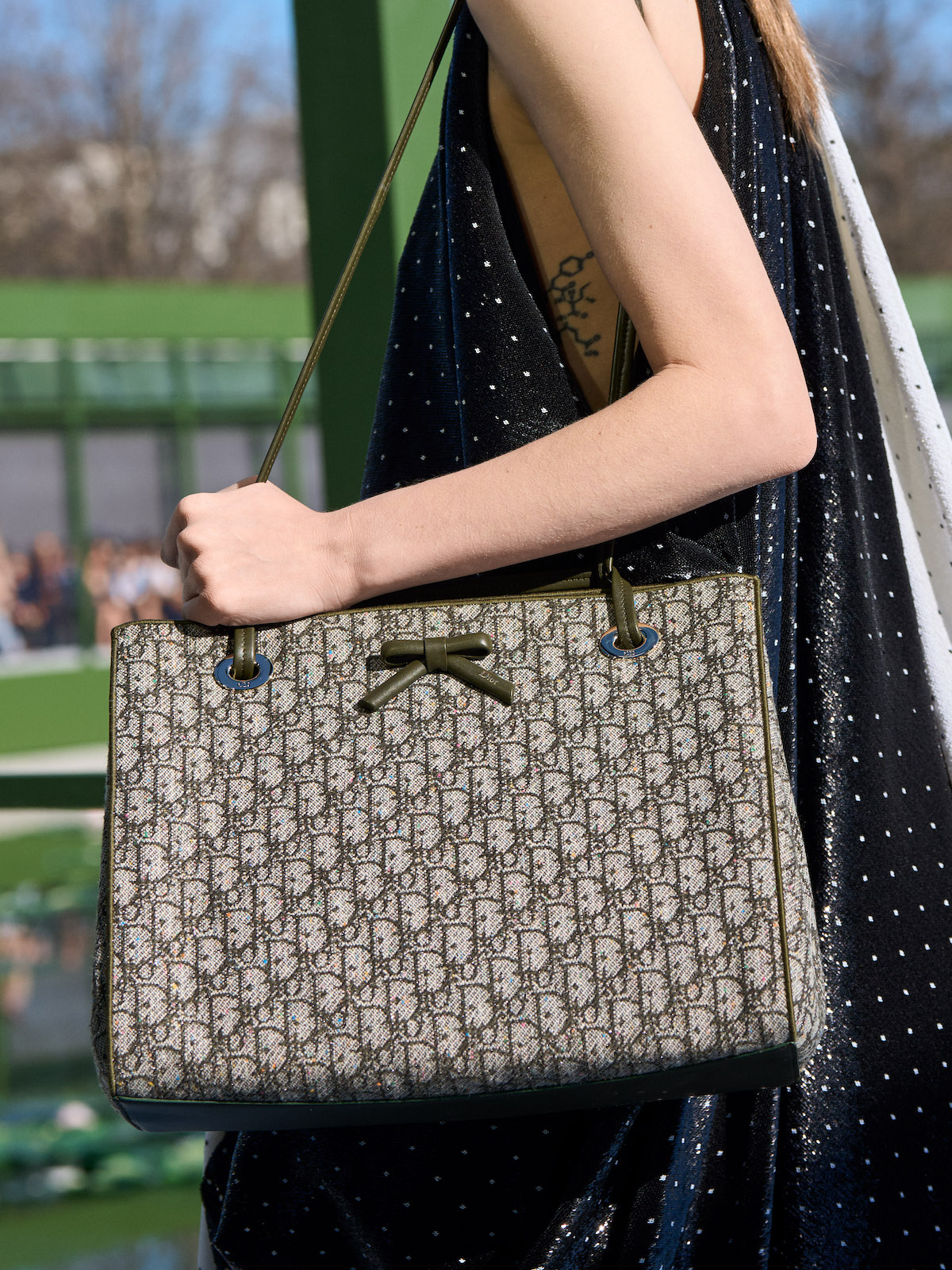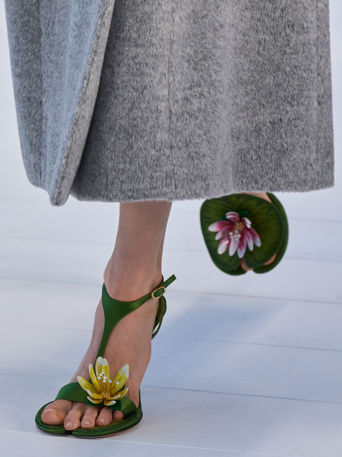 小物類に目を向けると、睡蓮を模ったアシンメトリーなサンダルや、ストラップに「DIOR」のメタルアクセサリーをあしらったスエードブーツなどのシューズ類に加え、オールニット製のトップハンドルバッグやリボンとポルカドットを組み合わせたレザーバッグ、アンダーソンらしい童心をくすぐる亀を模したがま口バッグなどが印象に残った。バッグはショーに登場しただけでも相当数のデザインやバリエーションが見られ、この中からブックトートのような大ヒットが生まれるかもしれない。