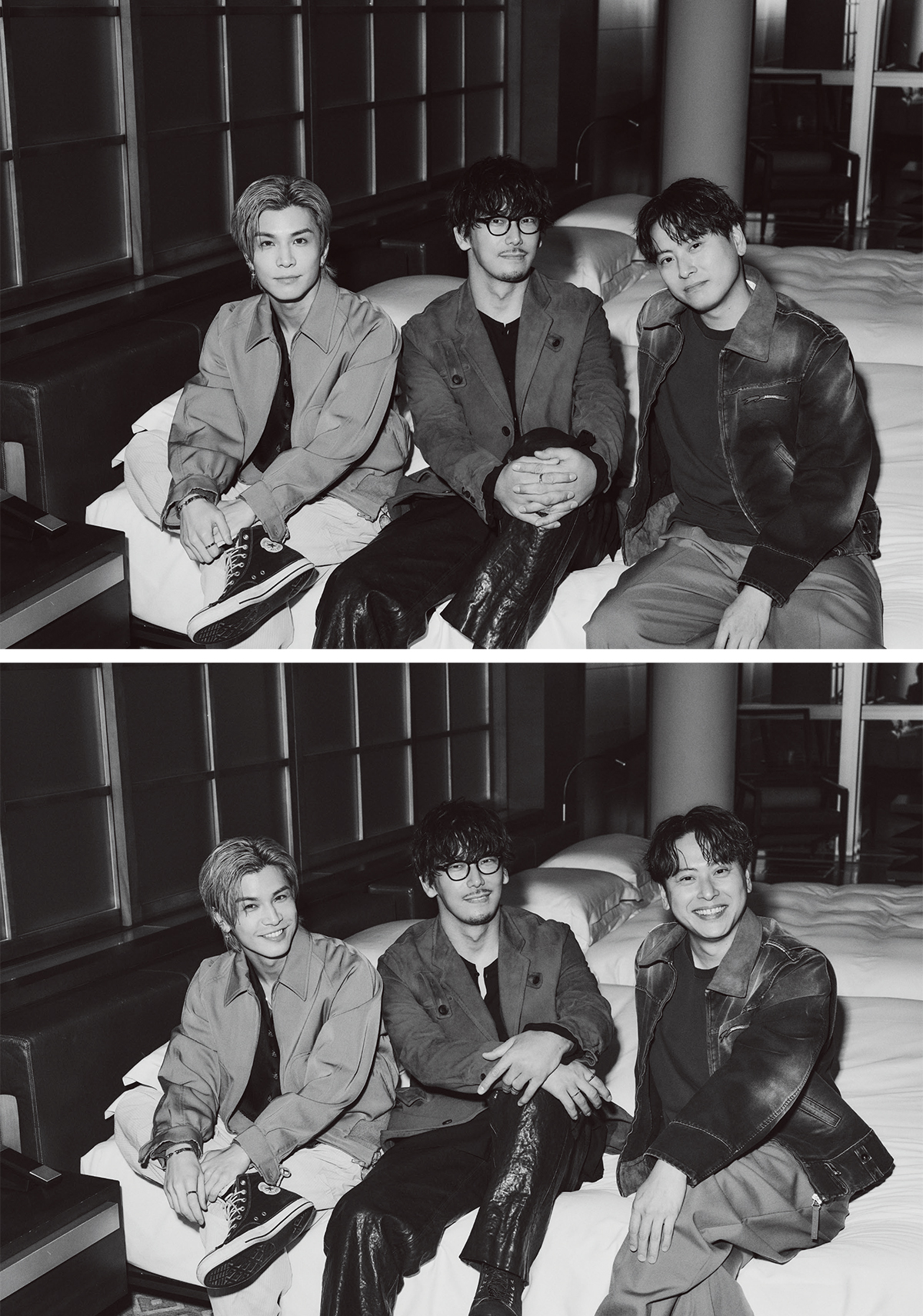 15周年という節目に集まったのは、都内のホテル。7人がともに過ごす時間は、どこか“大人の修学旅行”のように穏やかで、あたたかく、そしてどこまでも親密。言葉を交わさなくても通じ合う距離、ふと重なる笑い声、自然と寄り添う気配——。ステージでは見せない素顔の瞬間が切りとられていく。