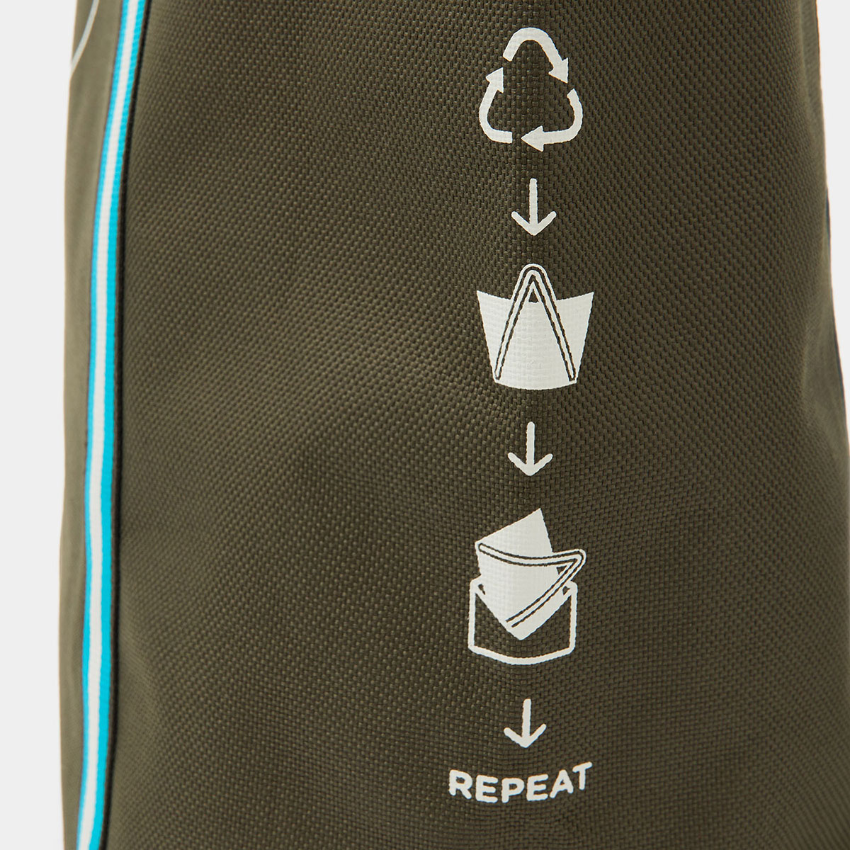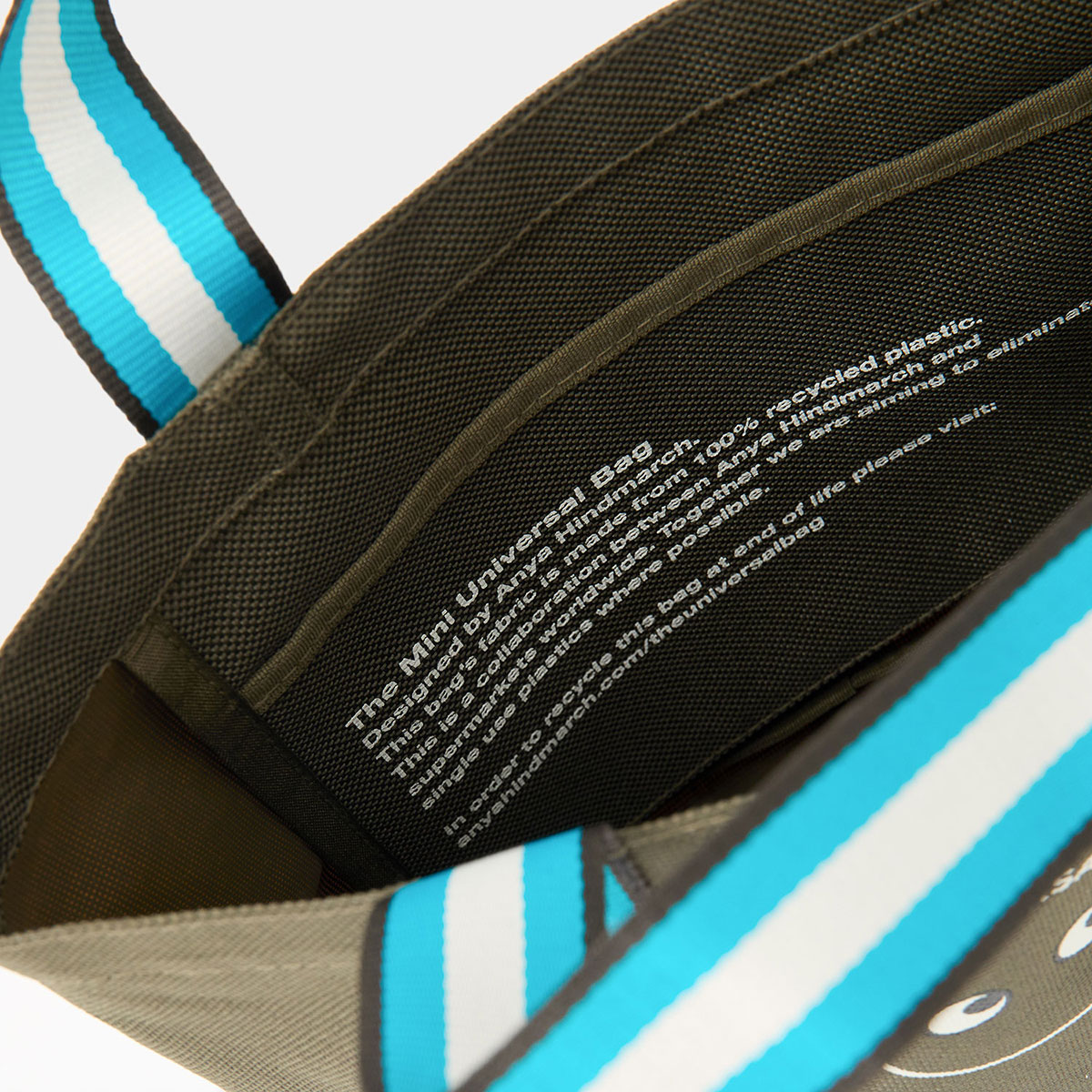 今回で第二弾となるブランド独自のエコバッグは、カーキ色のボディに鮮やかなスカイ・ブルーのテープをあしらった特別なデザイン。旅行や買い物にも役立つ容量たっぷりのレギュラーサイズと、ちょっとした外出に最適なミニサイズの2点をセットにして販売する。