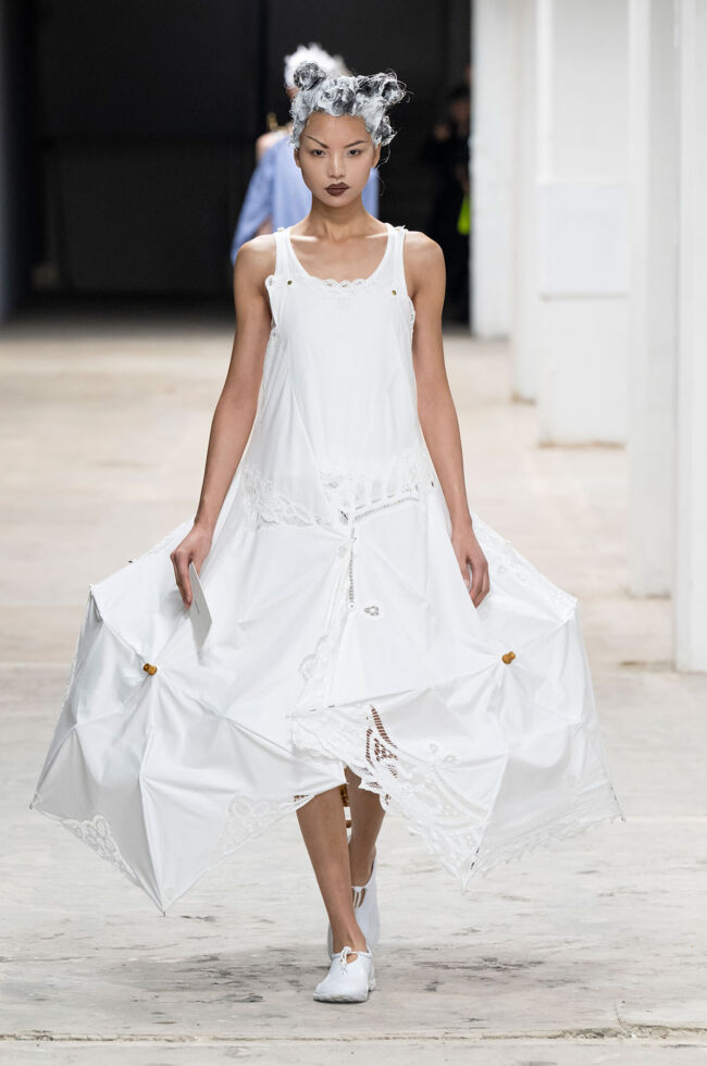 2025年10月のパリウィメンズファッションウィークのランウェイに登場した「JUNYA WATANABE x New Balance MT10T」は、「特定の用途のために作られた既製品を素材のひとつとして扱うことで、それらを再文脈化し、従来の手法では決して生み出せなかった形を探求した」という新たなアプローチによるジュンヤ ワタナベ SS26 シーズンのコレクションと共に、ニューバランスが再解釈した最新シルエットのミニマリスト・トレイルランニングシューズを形にしたもの。