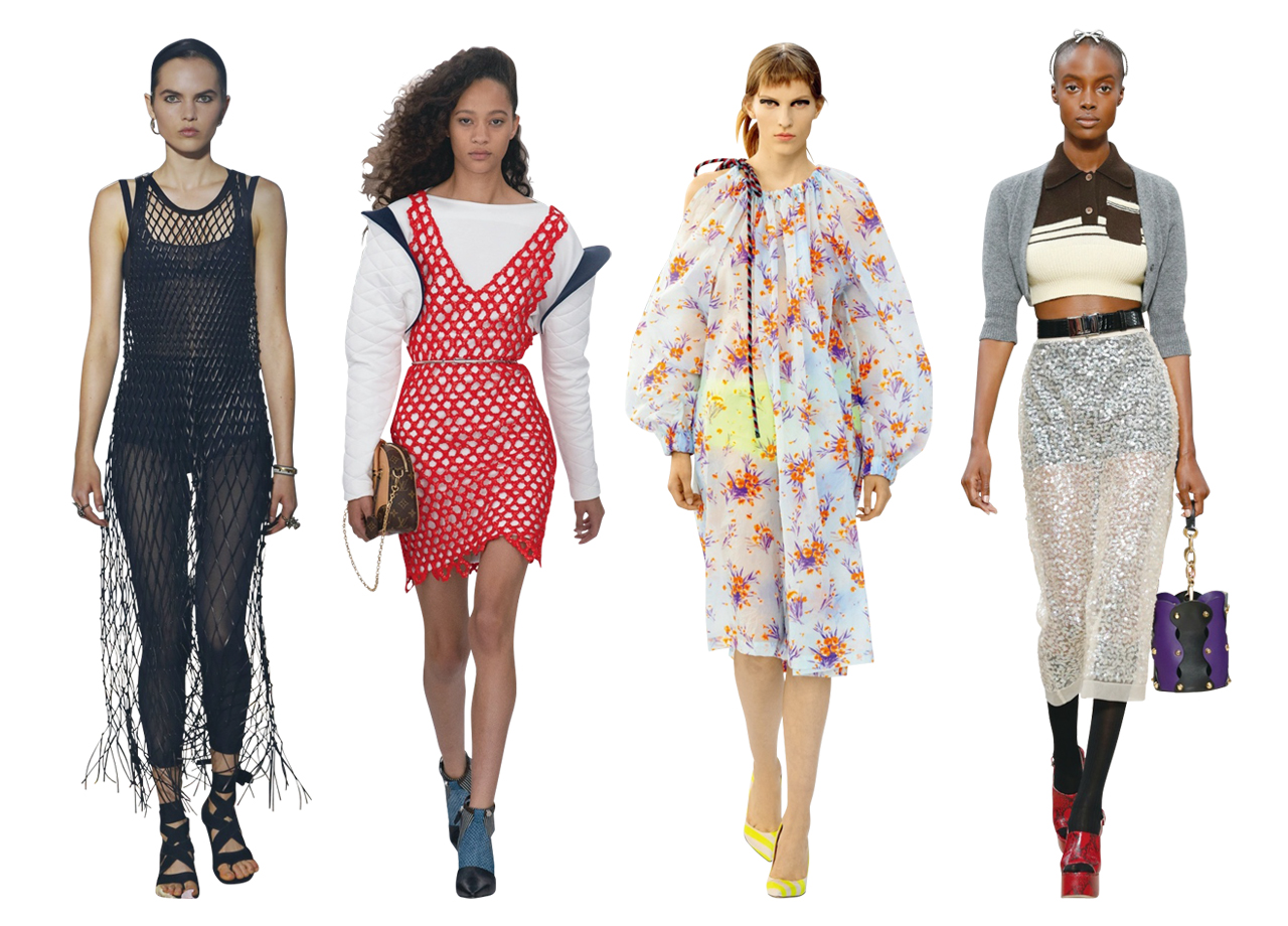 (左から)Dior、Louis Vuitton、Dries Van Noten、Miu Miu