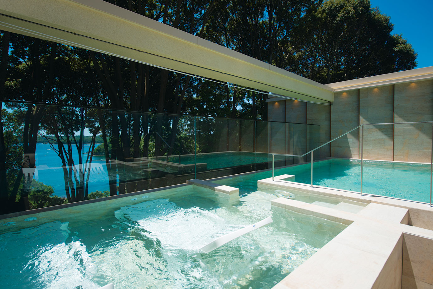 国内一リュクスなタラソスパと噂されるのが、伊勢志摩・英虞(あご)湾を見渡す美しい自然の中に佇む「ザ タラソ スパ」。フランス料理界の重鎮「ひらまつ」が運営するリゾート内に2016年にオープンした。スパプログラムのコンセプトは、江戸時代に日本で行われていた海水に浸かって体を癒やす「潮湯治」とタラソテラピーの融合。トリートメントを受ける前に、英虞湾の海水を使ったプールに入って“現代の潮湯治”を体験する。