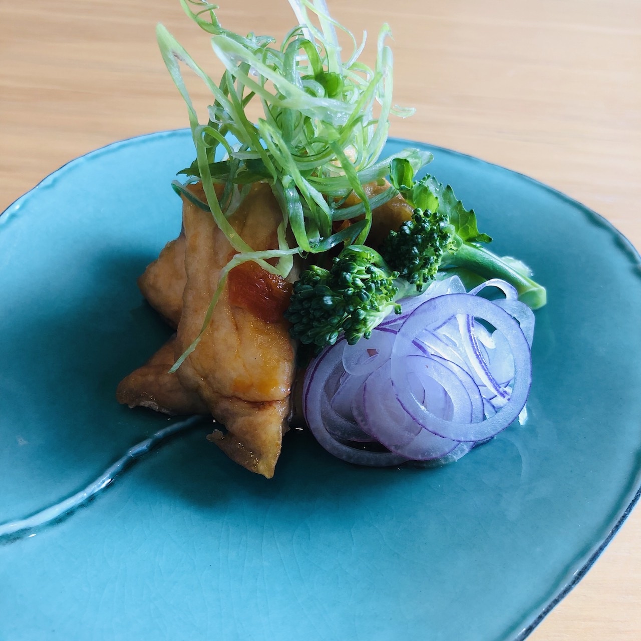 *今回はスティックセニョールと紫玉ねぎを添えました。白身魚はなんでも、鮭や鯵などでも◎。長ネギの白い部分を4cmくらいに切り弱火で焦げ目をつけて焼いたものやパプリカや豆類も一緒に漬け込んでもおいしいです。