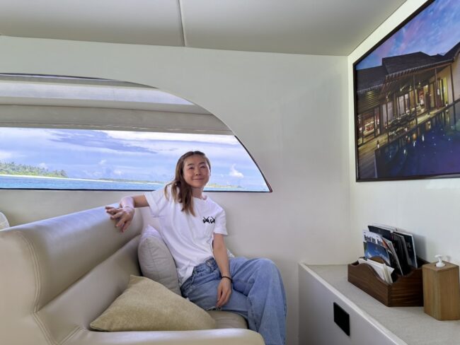 モルディブの交通手段ですが、空港から各リゾートへの移動はスピードボートが殆ど。THE OZEN COLLECTIONはセレブ気分を味わえるクルーザーでお迎えに来てくれるので、船に乗った瞬間から現実逃避のホリデイスイッチがONになります。