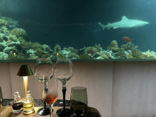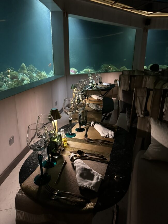 海底でのロマンティックな食事は、いつもよりシャンパーニュが進みます。