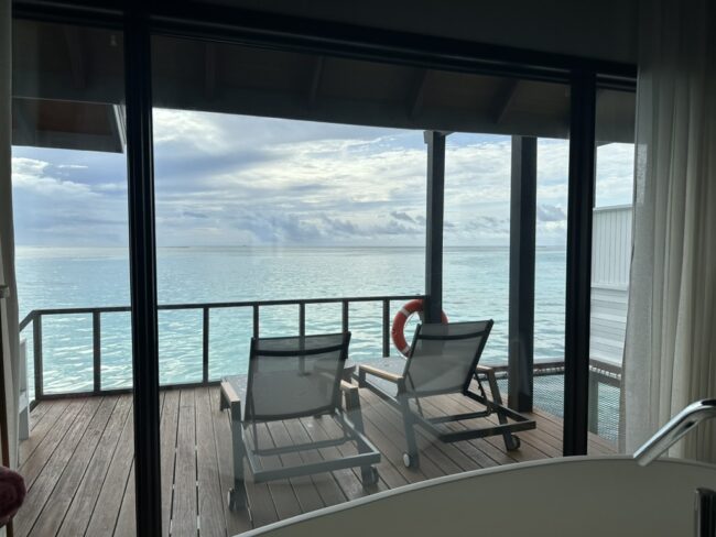 私は憧れの水上ヴィラにステイ。デッキから階段を降りて、海に直接ダイブできるという醍醐味が味わえます。