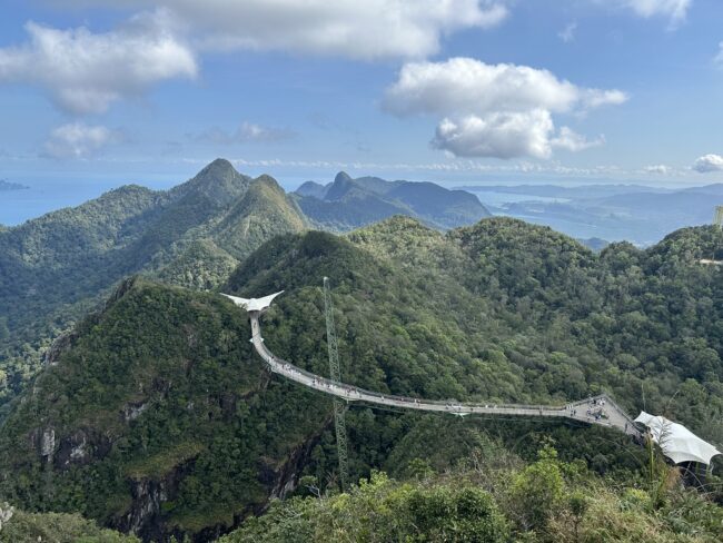 全長125mの曲線を描くこの橋、なんとたった1本の支柱で吊られています。タイの島々まで見渡せる絶景が、橋の上から歩きながら楽しめます。ちなみに絶景を狙うなら午前中が良さそうです。午後は雲が出て、視界が真っ白になることもあるとか。