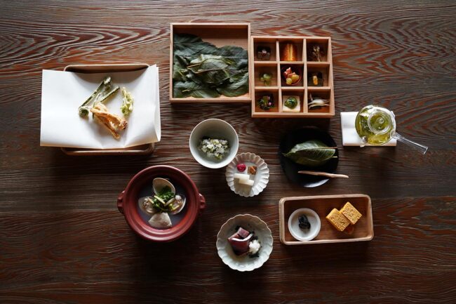 また、四季折々の素材を生かした和菓子を提供する「楳心果(ばいしんか)」、生活道具の販売や季節の企画展を開催する「サロン」、そして旬の食材を職人の手で丁寧に仕立てる料理を供する「茶寮」もあり、五感を満たす上質な時間を過ごすことができます。