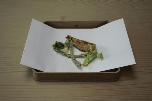 (左)山菜天ぷら 竹の子 芝海老