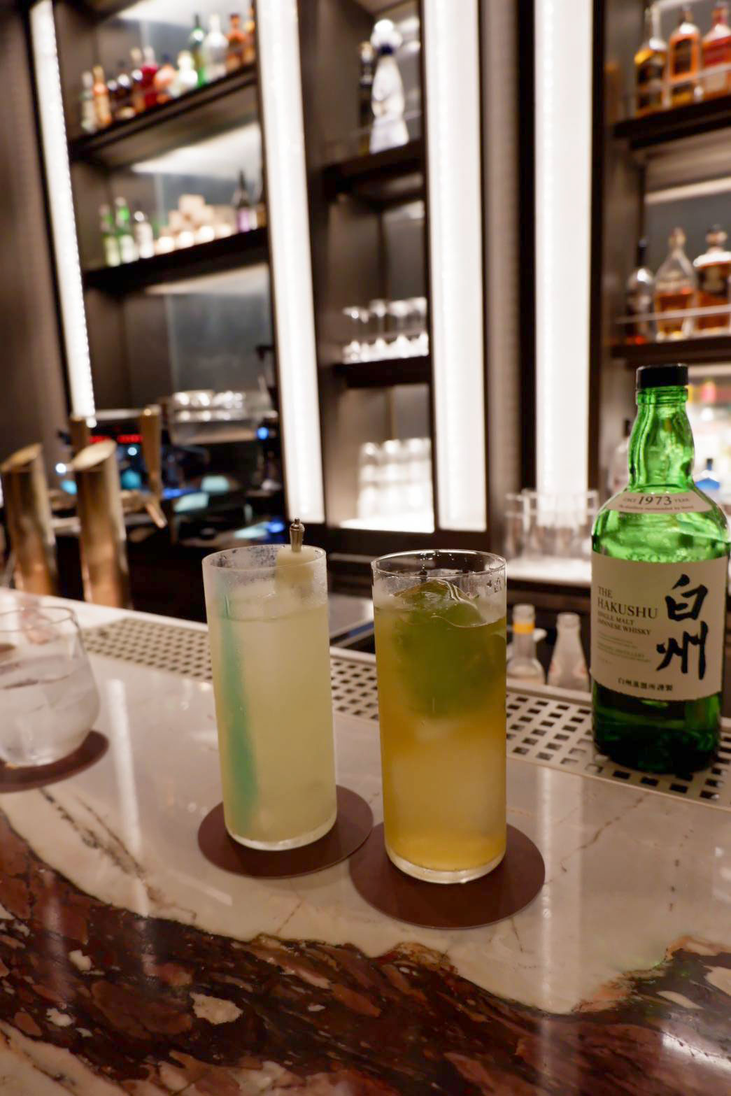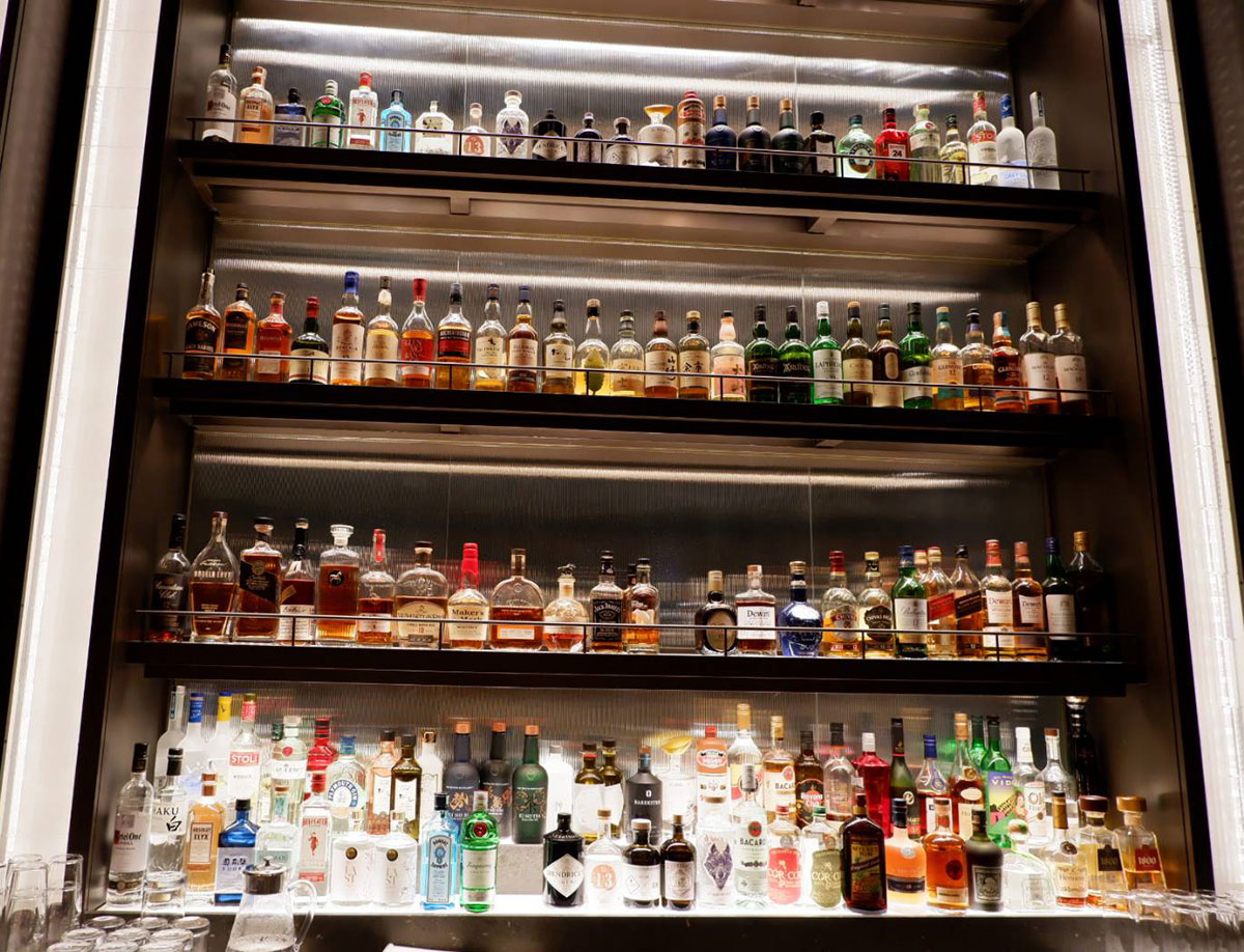 たくさんのボトルがディスプレイされ、美しくライトアップされたバーカウンター。ワインやウイスキー、日本酒、リキュールなどを豊富に取り揃えているほか、ここでしか味わえないシグネチャーカクテルも登場。新宿という地にインスパイアされたユニークなカクテルの数々は、メニューを見ているだけでもワクワクします。