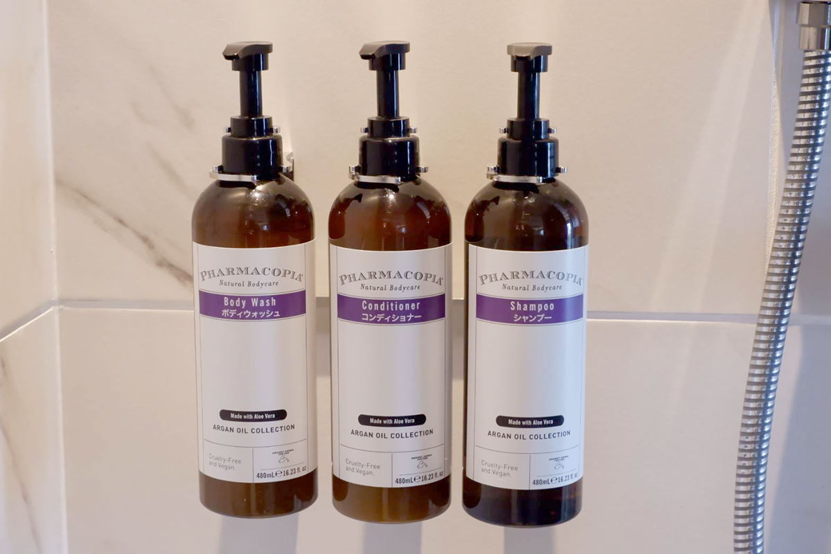 バスアメニティは、植物由来のスキンケア・ヘアケアブランド「Pharmacopia」のもの。
