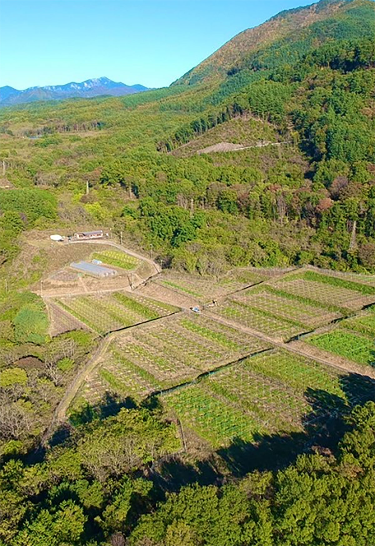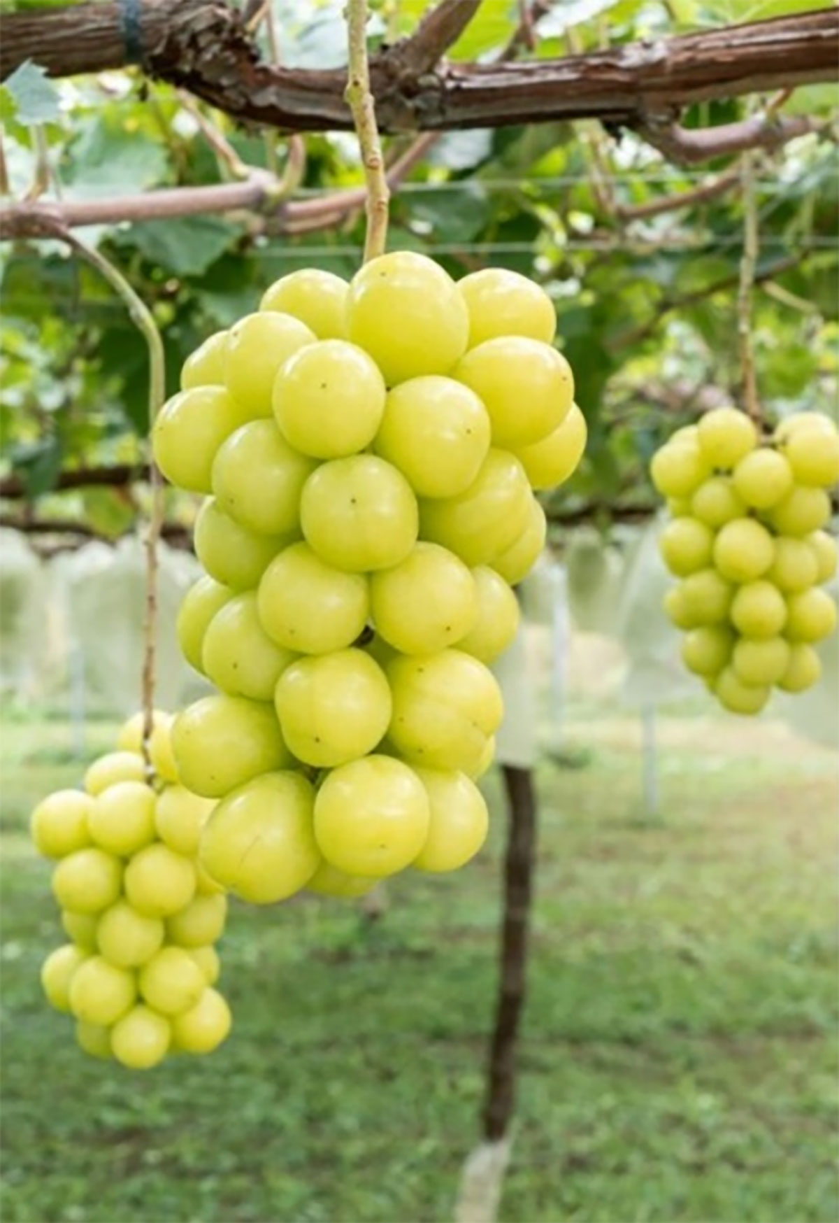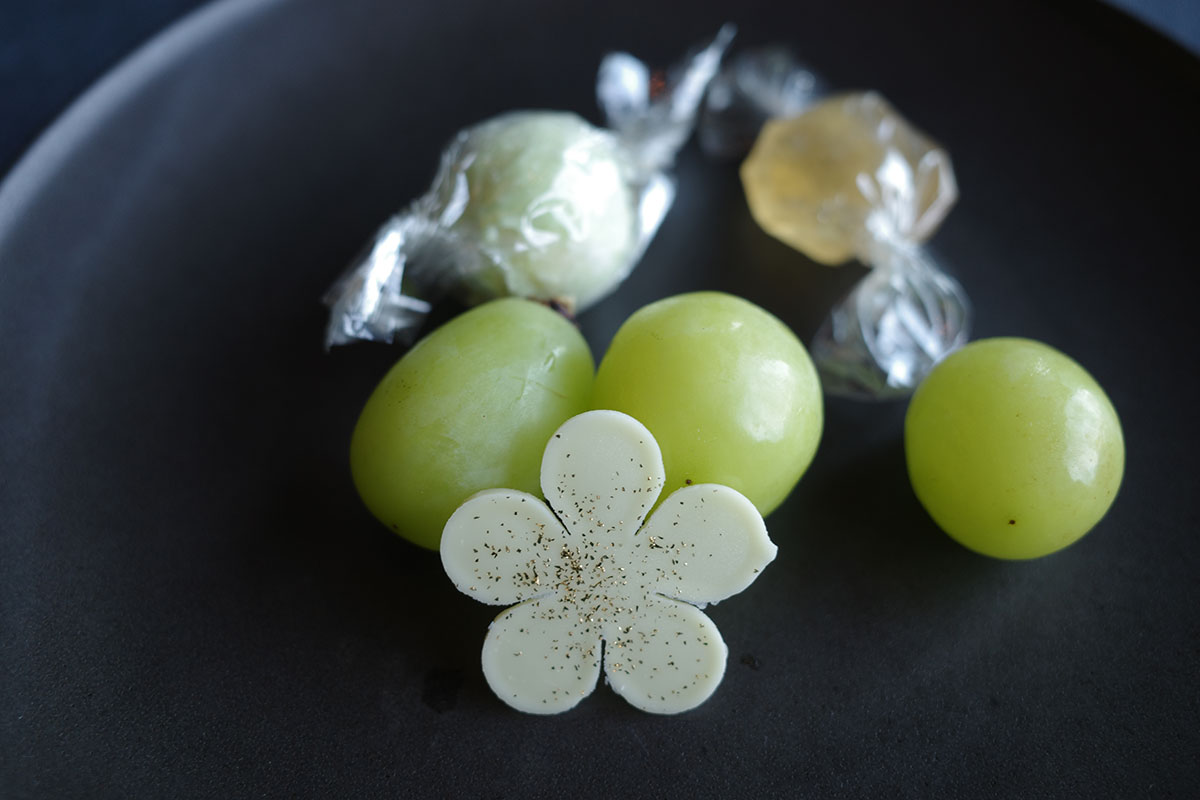 主役のシャインマスカットは、前述の通り山梨県・北杜市にある自社契約農園で大切に育てられたもの。日本有数の日照時間を誇る土地で、太陽の恵みをたっぷり浴びながら、シェフたちが何度も足を運び、農園の方々と共に手をかけて育ててきました。2021年に始まったこのプロジェクトは、今年ついに十分な収穫量を迎え、こうしてメニューとしてお目見えすることに!