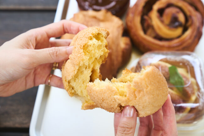 ブリオッシュ生地には必ず卵を使用すると思うのですが、こちらは卵の代替品の「ユンゴ」で作られているそうです。フランス・パリのヴィーガンパン屋さんでもユンゴが使用される事がスタンダードなのですが、日本でもパリのヴィーガンパン屋さんと同じものが食べれる……!