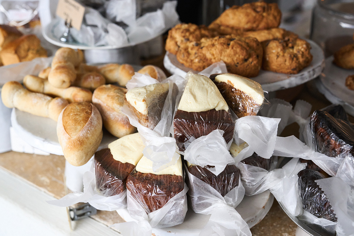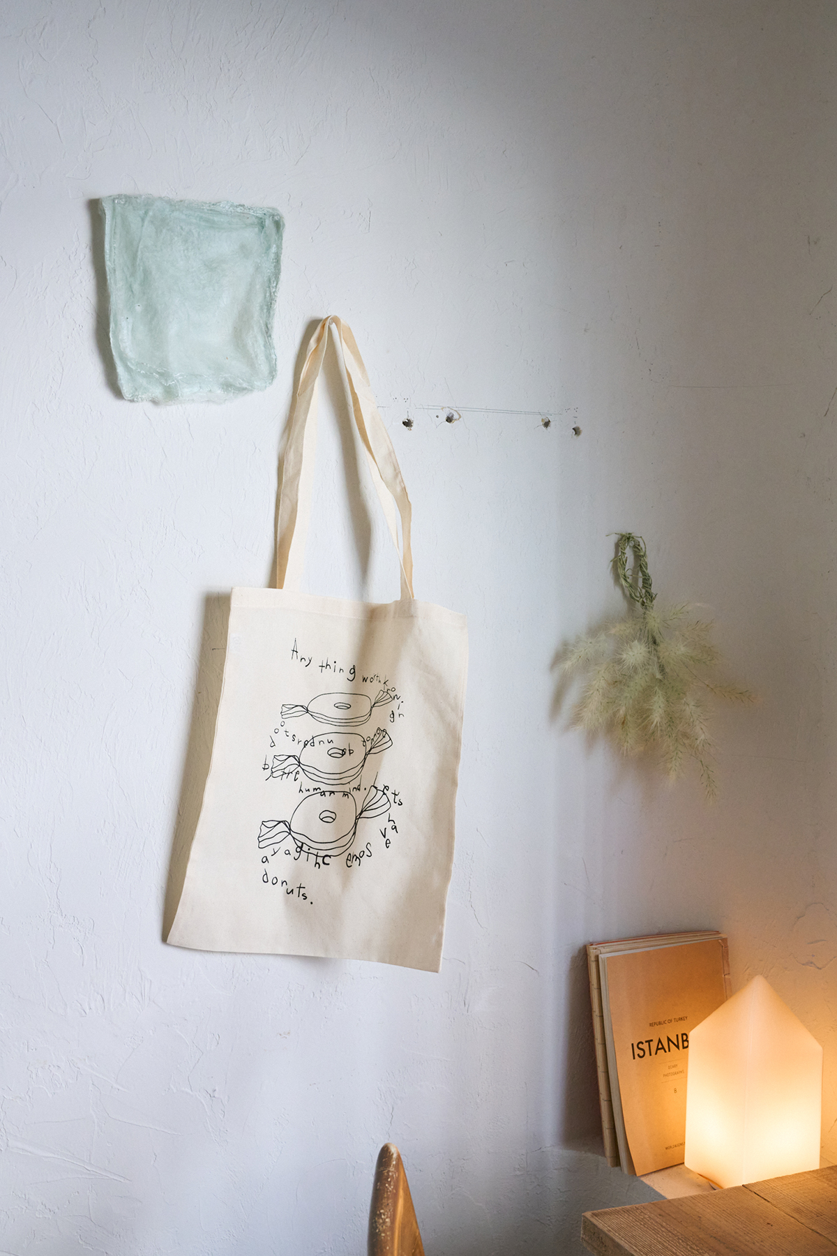壁にかかるエコバッグももはやアートに見える。ちょうど取材に伺った日に、ポートランド出身の男性がここの角の席に座っていました。何気なく会話をしたところ「僕は1週間毎日ここに来ている。パンおいしい」と言っていました。パンはもちろんなんですが、カフェスペースの居心地の良さも「また来たい!」と思う要素になりそうだなぁと思いました。
