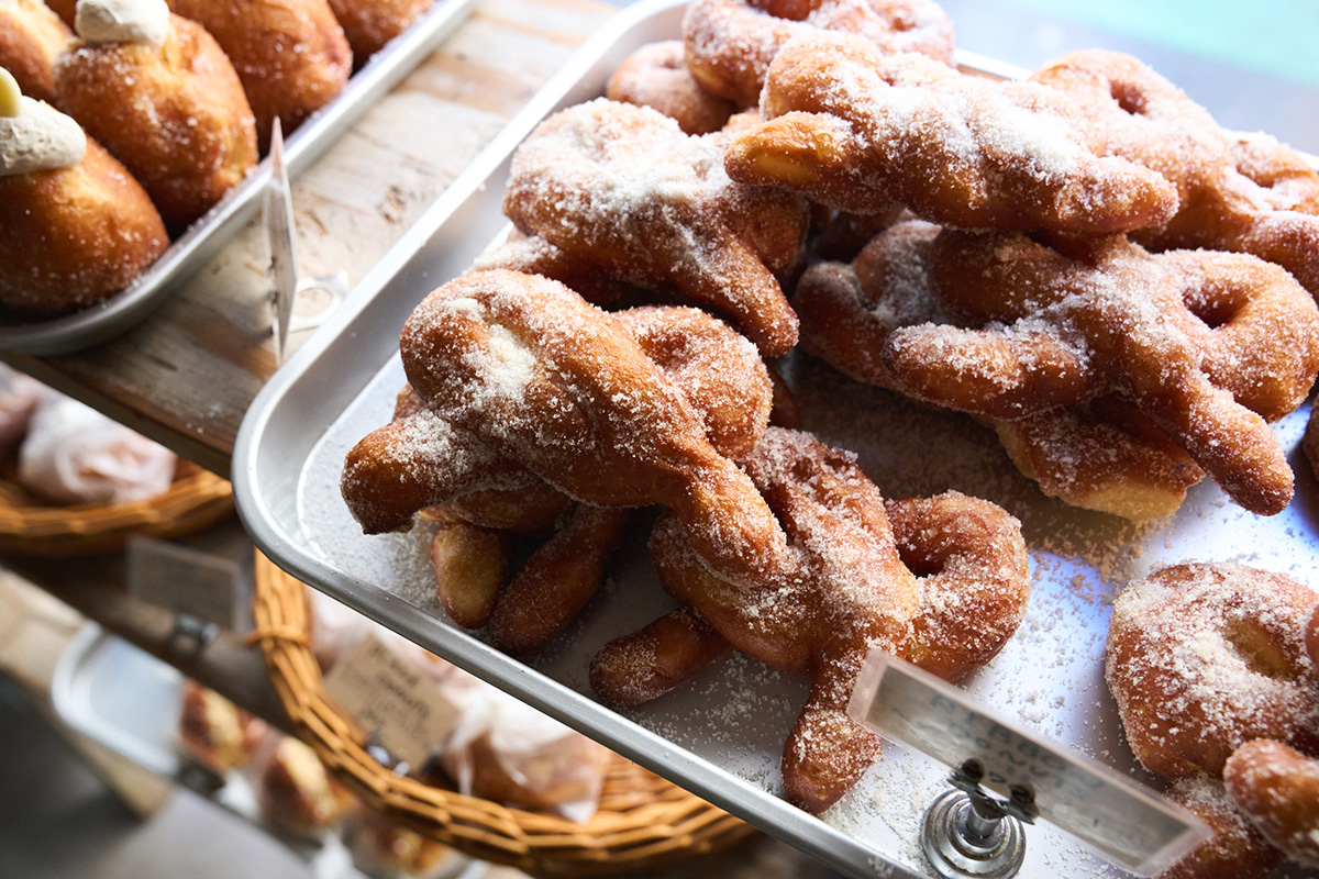フォルムが愛らしいリボンドーナツは一口食べるとカルダモンシュガーの香りがふんわり優しく広がります。う〜ううまぁ〜い。ジャリっとした甘さとドーナツ生地のもっちりとしたジューシーさが口内いっぱいに広がり……なんだか懐かしい気分。なるほど、給食で出てきたツイストした揚げパンにムードが近いんです。